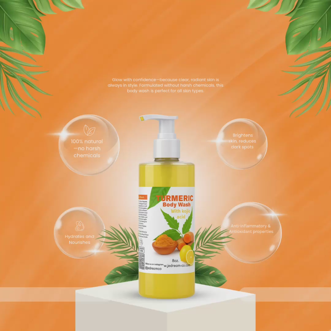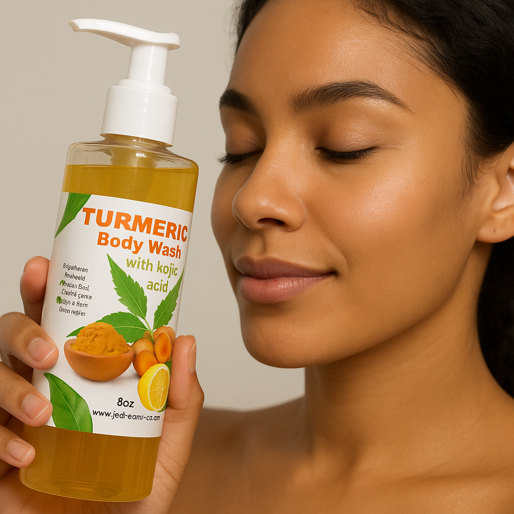Turn your daily shower into a self-care ritual. Our Turmeric Body Wash with Kojic Acid is specially crafted to gently cleanse while targeting dark spots, uneven tone, and dull skin. Infused with natural turmeric extract, it helps restore your skin’s glow, while kojic acid works to brighten and smooth for a more radiant, even complexion.